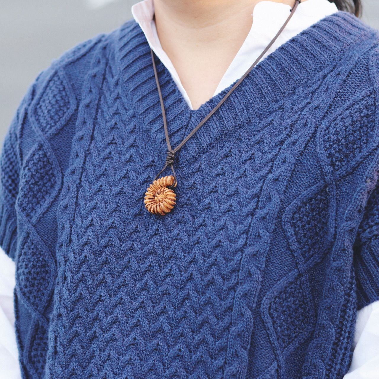 アンモナイト 木彫ペンダント〈樹種:オリーブウッド〉